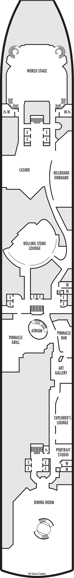 PUBLIC AREAS Pinnacle Bar Explorer's Lounge Pinnacle Grill  | | This intimate venue offers an elegant, sophisticated dining experience. Featuring premium Sterling Silver Beef®, inspired seafood dishes and many select wines rated "Excellent" by Wine Spectator – as well as distinctive Bvlgari® china, Riedel stemware and Frette® linens. |