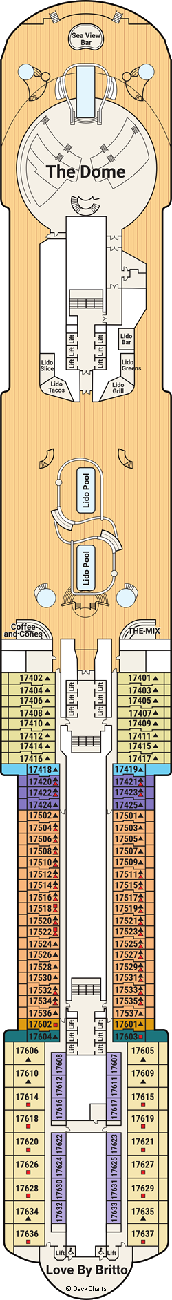 | | Deluxe Balcony DE This balcony stateroom provides outstanding views from a deluxe private balcony, and bathroom with shower. Includes sofa bed. |