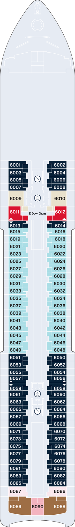 Total Suite Area: 48 m² (517 sq.ft) on decks 9, 10 / 53 m² (570 sq.ft) on deck 6 / 61 m² (657 sq.ft) on deck 7