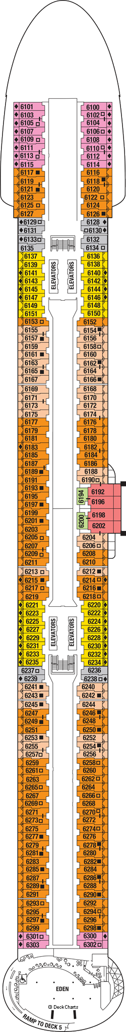 | | Panoramic Ocean View PO Enjoy ever-changing vistas through floor-to-ceiling windows, plus more space than our standard Ocean View Stateroom. Panoramic Ocean View Staterooms are ideal for families and travelers looking to relax with the ocean as their backdrop. |