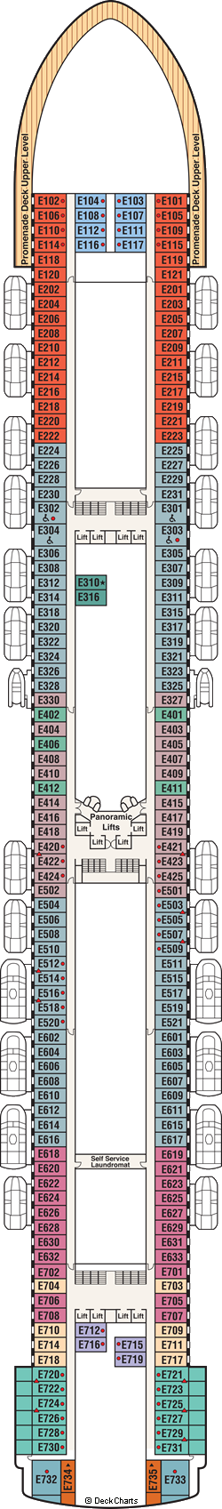 | | Vista Suite with Balcony S6 Approximately 460 to 495 sq. ft. including balcony, the Vista Suite features a spacious cabin and aft-facing balcony. Enjoy exclusive suite-only upgrades and benefits. |
