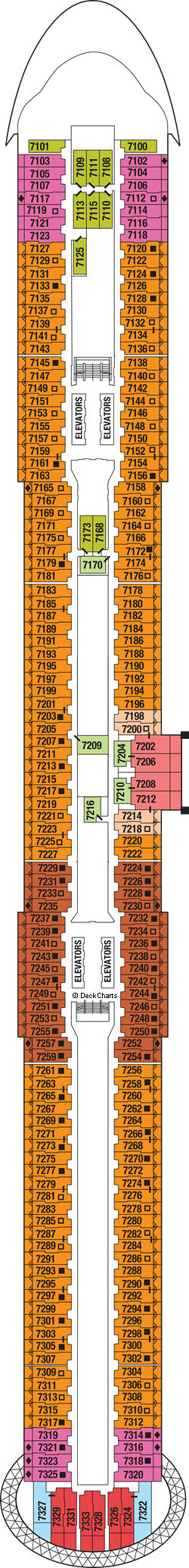 | | Deluxe Inside DI With ample living space, bigger bathrooms, and more drawer space, Deluxe Inside Staterooms will become your home away from home while on board. Relax at sea after a day thats as busy or laid back as you wish.202 sq.ft Amenities: - Four pillows in every stateroom
