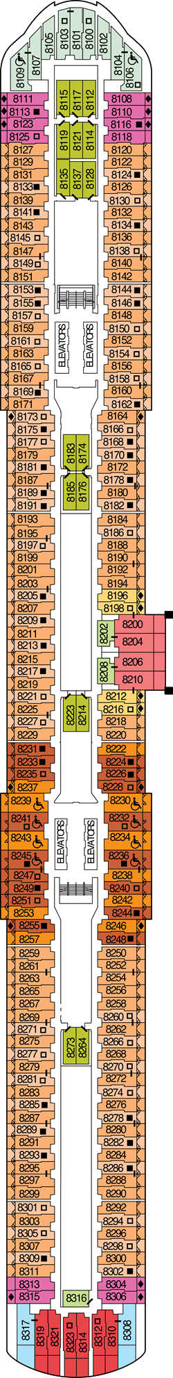 | | Inside I2 The private and perfectly proportioned Inside Stateroom is the ideal place to relax after your day of discovery. Need a little extra space? Combine two Inside Staterooms. Connecting at sea has never been easier.181 sq.ft Amenities: - Four pillows in every stateroom