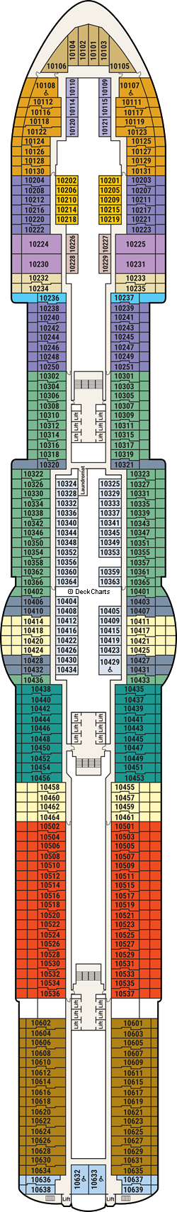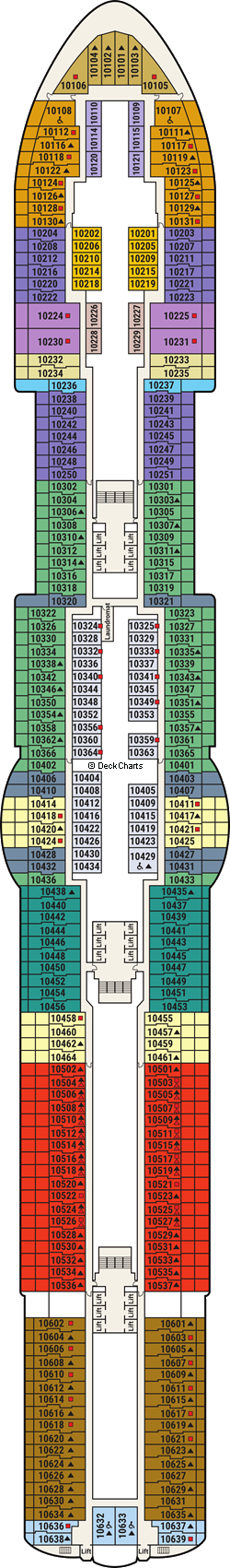 | | Deluxe Balcony DE This balcony stateroom provides outstanding views from a deluxe private balcony, and bathroom with shower. Includes sofa bed. |