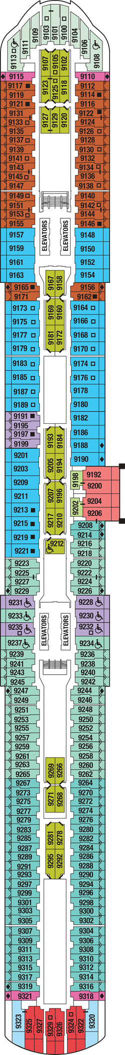 | | Deluxe Inside DI With ample living space, bigger bathrooms, and more drawer space, Deluxe Inside Staterooms will become your home away from home while on board. Relax at sea after a day thats as busy or laid back as you wish.202 sq.ft Amenities: - Four pillows in every stateroom