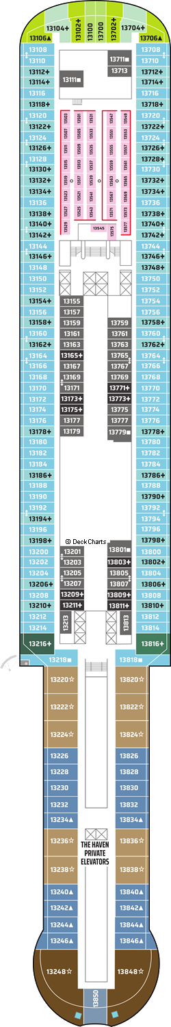| | The Haven Deluxe Owner's Suite with Large Balcony H3 The best address on board, The Haven is a world of luxury at the top of the ship, featuring 24-hour butler service.Amenities - 24-Hour Butler