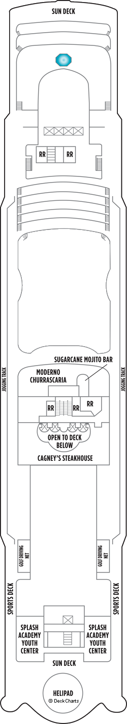 PUBLIC AREAS Cagney's Steakhouse  | | Like Cagney himself, our upscale, traditional steak house serves perfectly grilled steaks in a setting right out of the 1930's with all the trimmings. Accommodates: 108 |