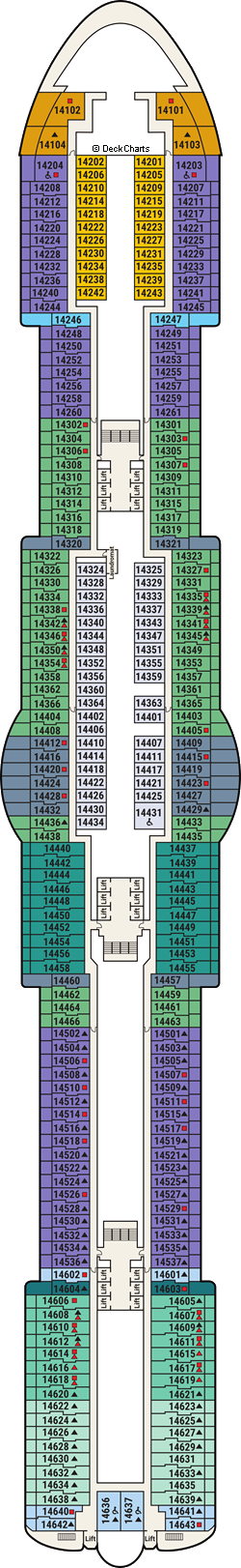 | | Deluxe Balcony DE This balcony stateroom provides outstanding views from a deluxe private balcony, and bathroom with shower. Includes sofa bed. |